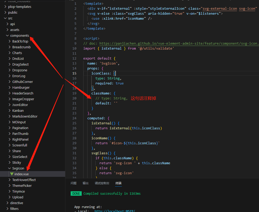 项目中引入svg图标时, 创建svgIcon组件需要注意把props中的className去掉type,就可以共同使用了