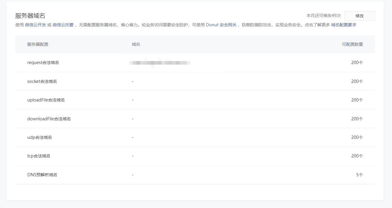 2. 点击左侧边栏开发 => 开发管理 => 开发设置 => 服务器域名