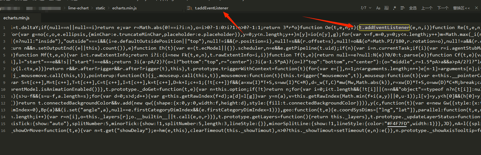 打开echarts.min.js 搜索字符串 t.addEventListener