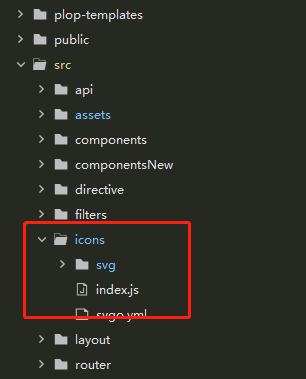 创建icons文件夹,在icons文件夹下创建svg文件夹存放本地svg图标。