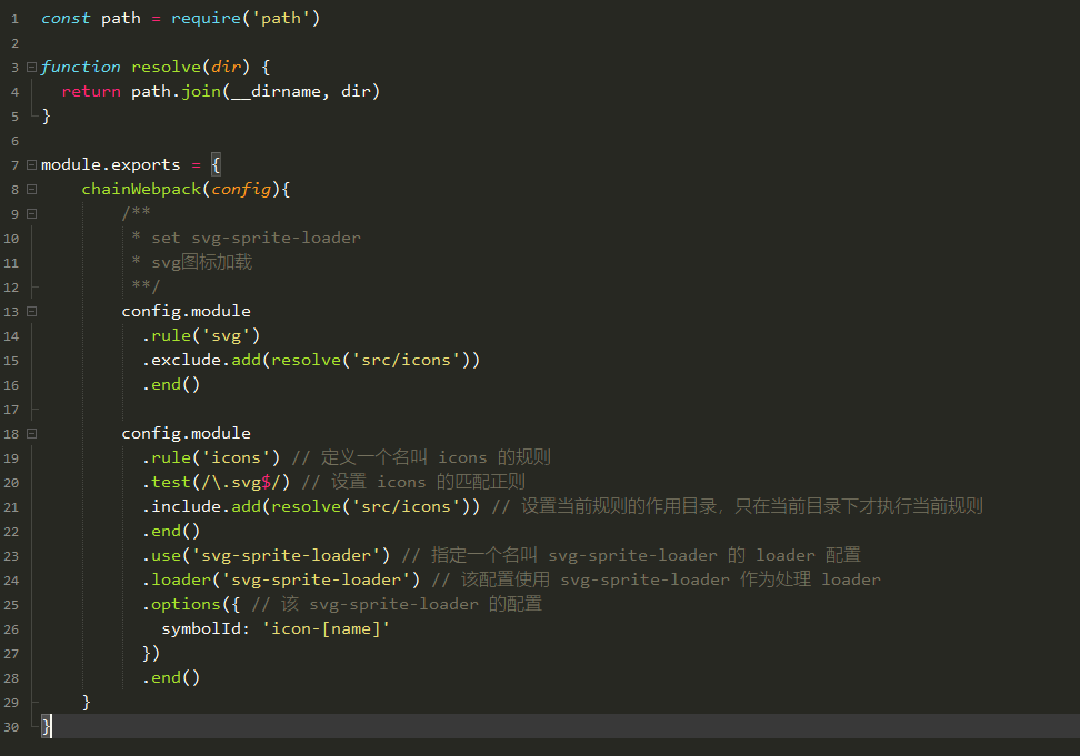 .loader('svg-sprite-loader') // 该配置使用 svg-sprite-loader 作为处理 loader