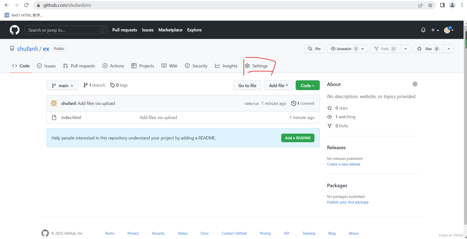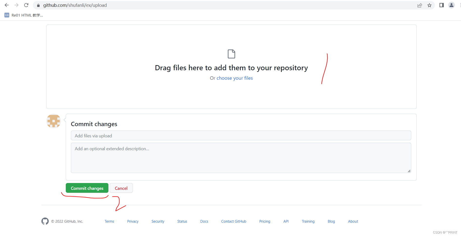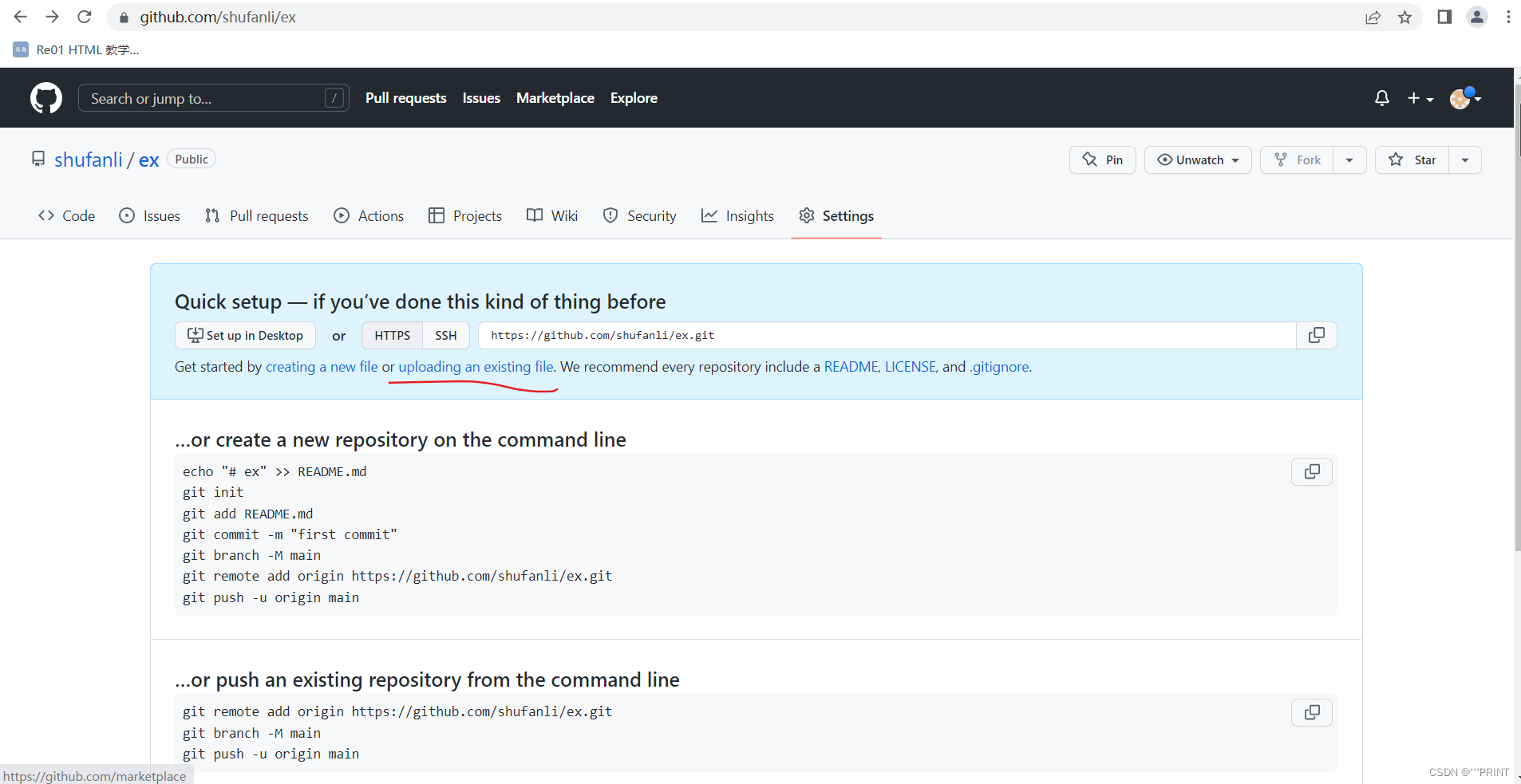 - 点击uploading an existing file 上传一个已有的文件,或将文件拖动进入